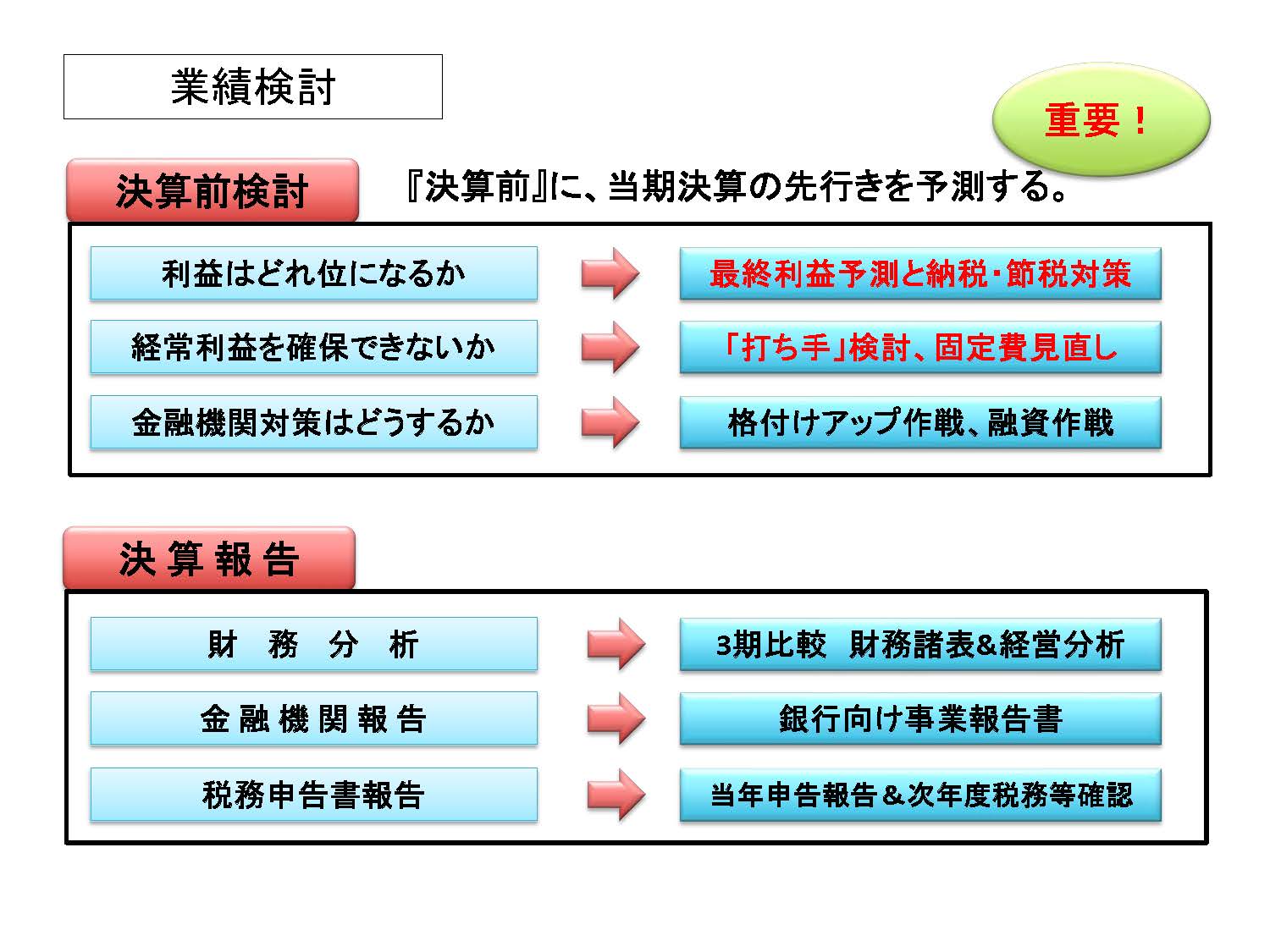 • 決算前検討